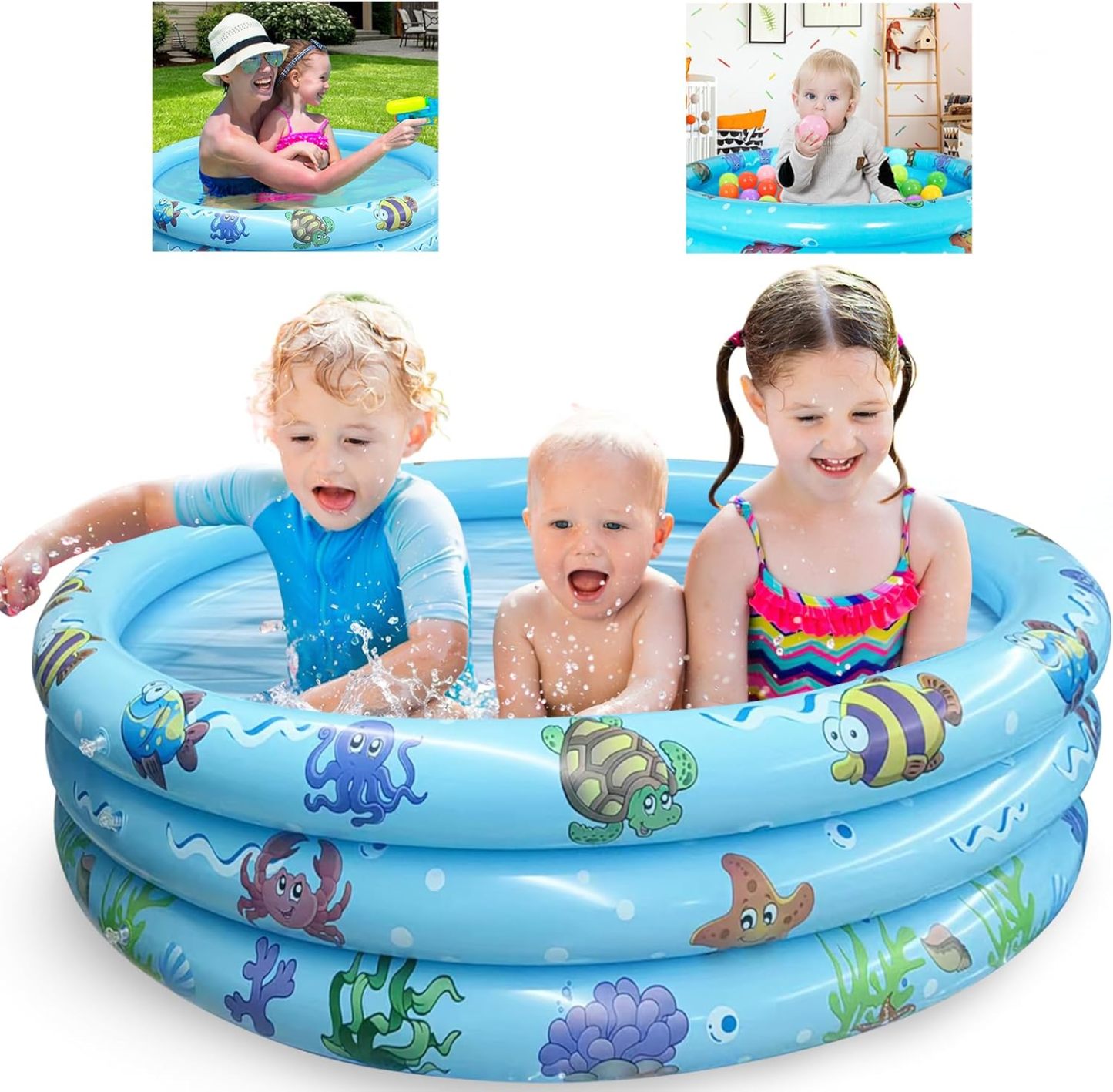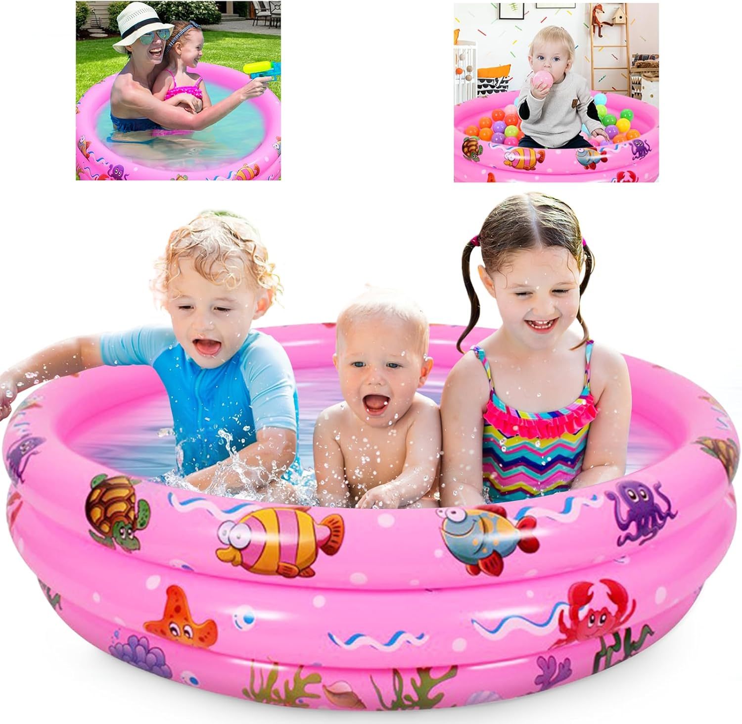 Qué obtendrá: una piscina inflable para niños de aproximadamente 48 pulgadas / 120 cm; Son juegos interesantes para que niños y niñas jueguen en interiores y exteriores, cree recuerdos duraderos con su familia y amigos, ¡haga que este verano sea inolvidable!