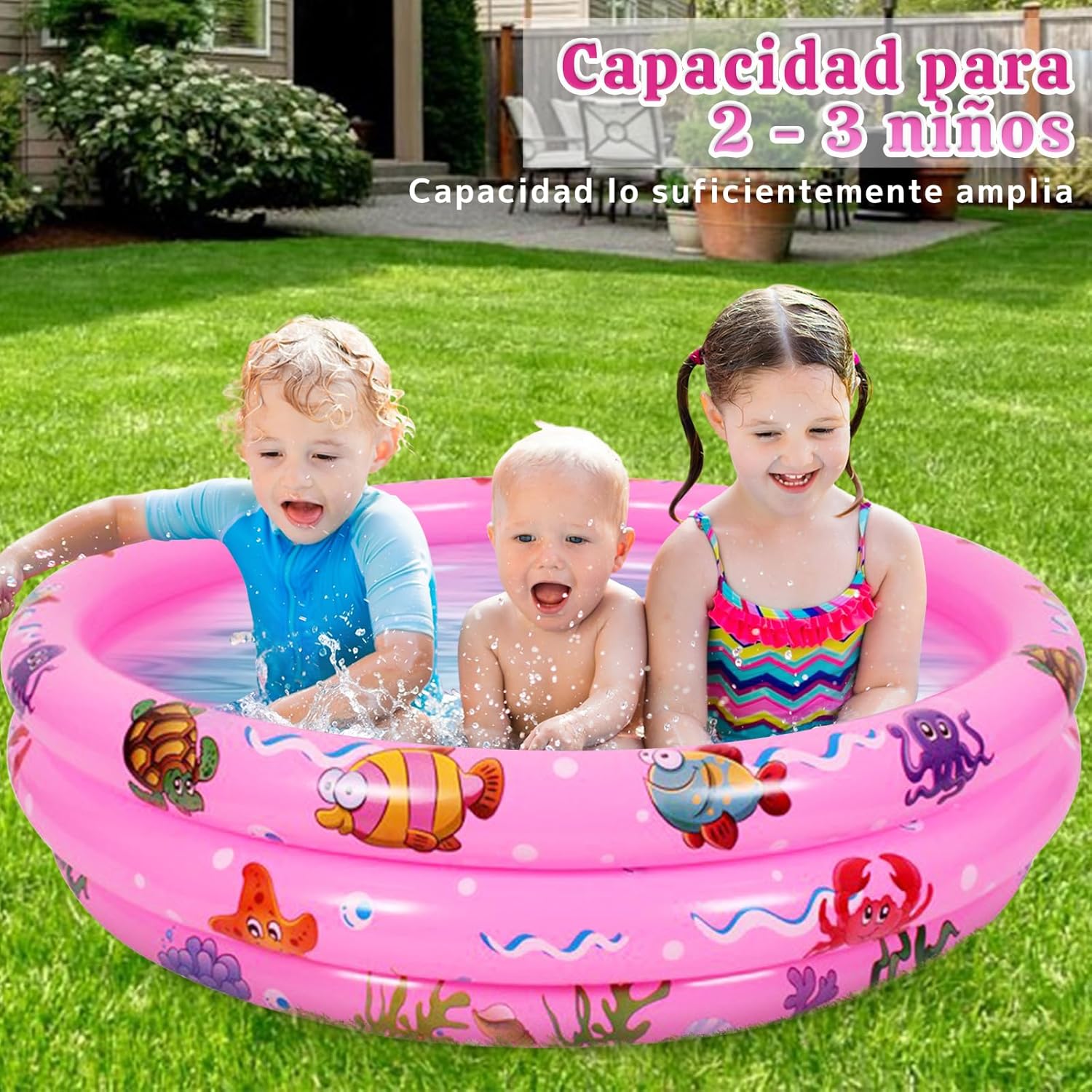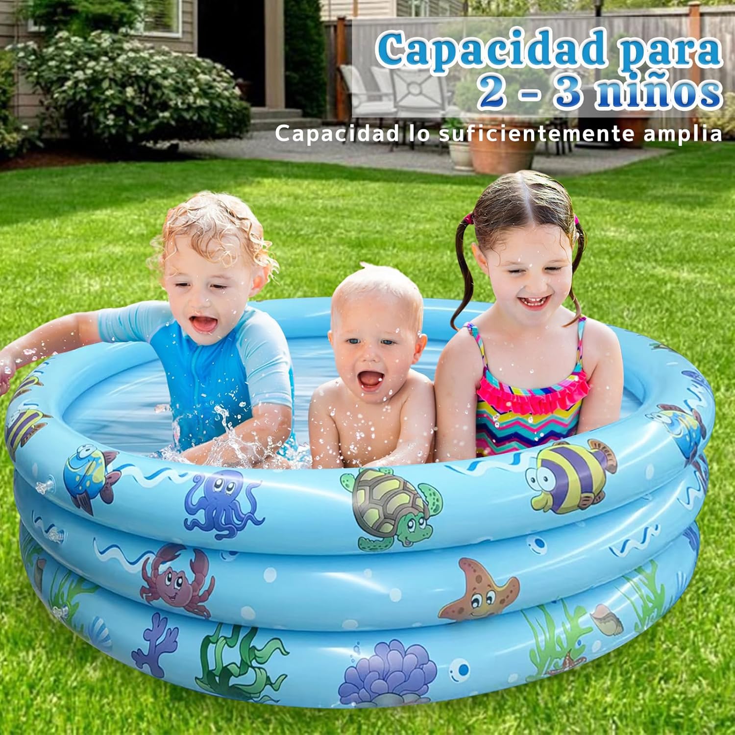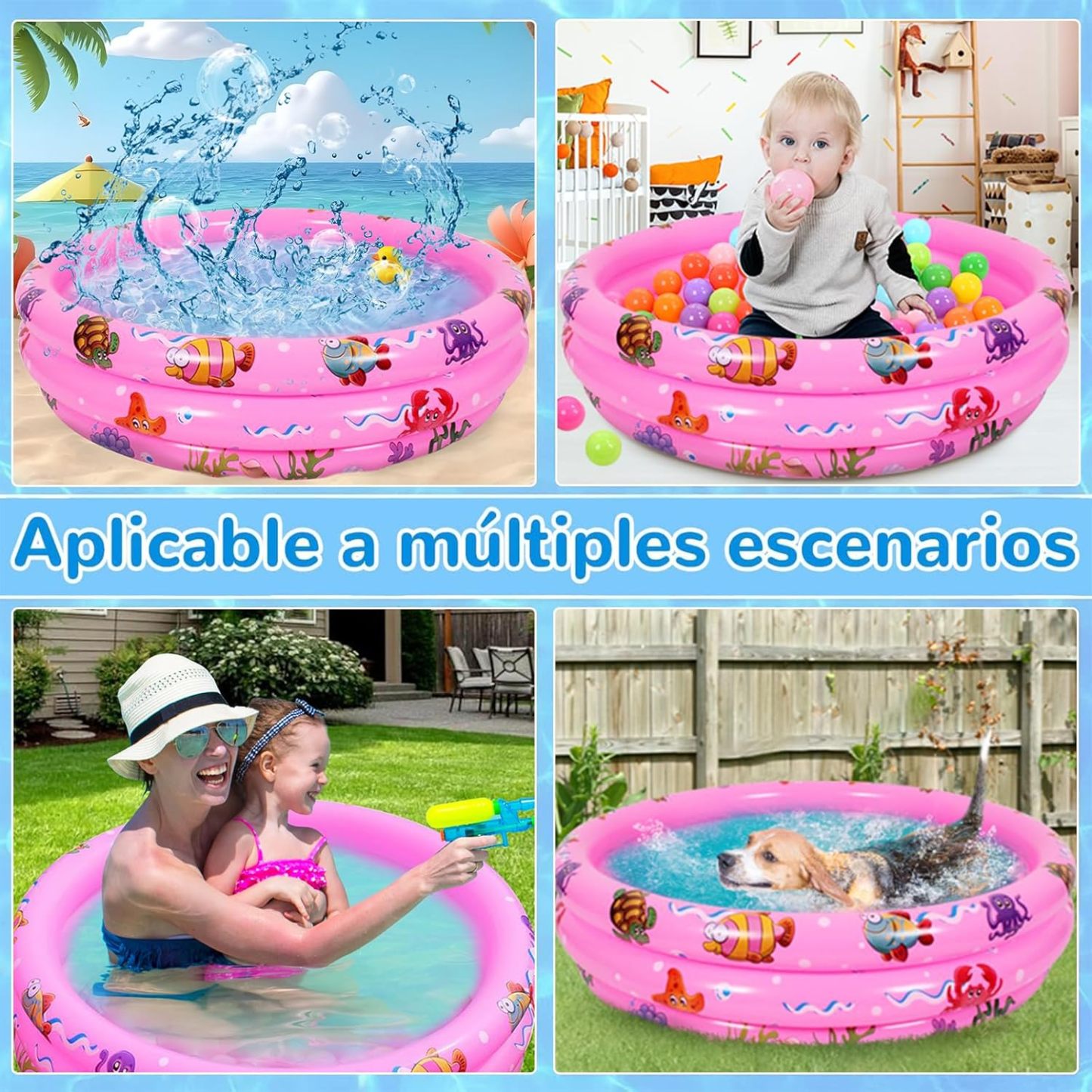 Piscina infantil de 3 anillos para niños, Sana e inodora, piscina de patio trasero para los niños es ligero pero grueso, Material reforzado con airbags independientes para cada regazo, pueden evitar eficazmente las fugas durante el juego.
