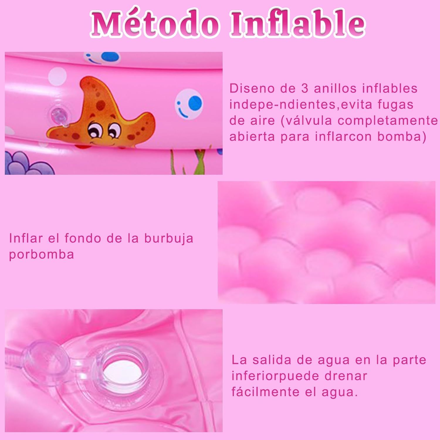 El fondo acolchado hinchable es cómodo, Fondo de burbujas para proteger a los niños de lesiones, el diseño antideslizante en la parte inferior mejora la seguridad.
