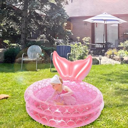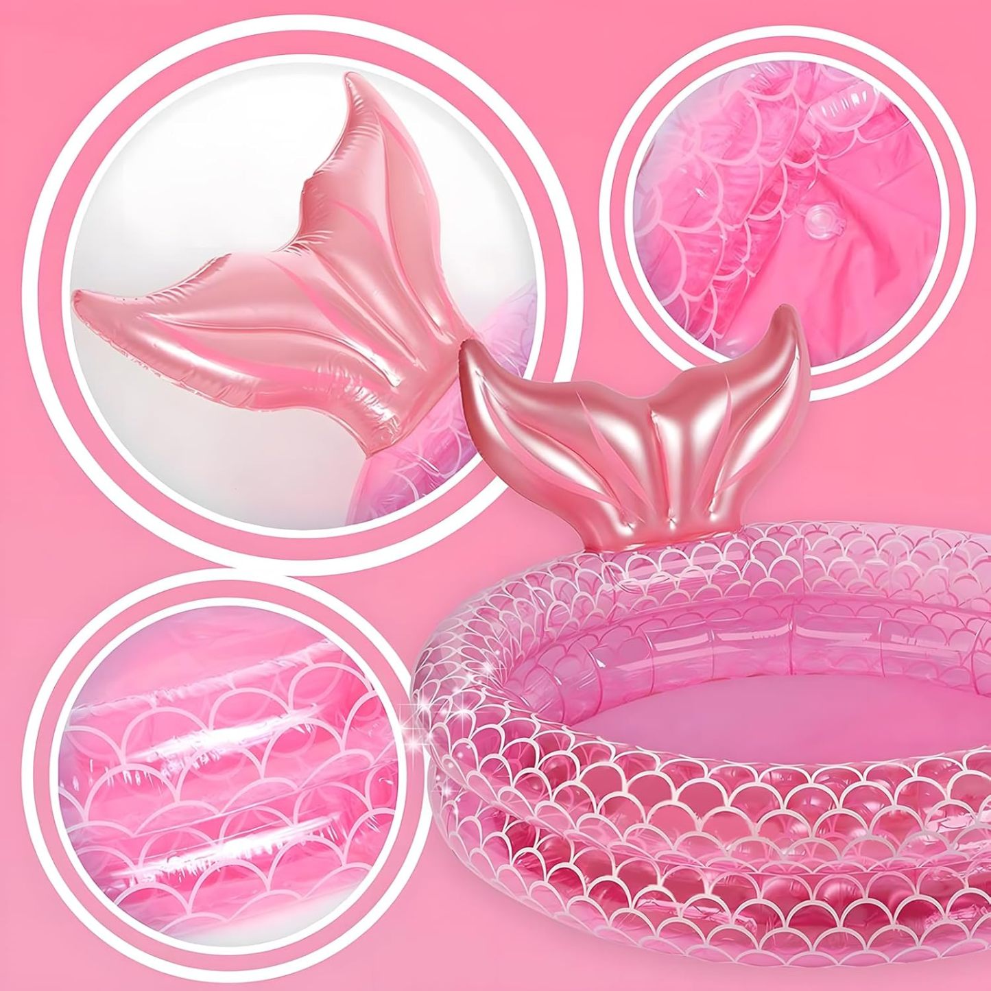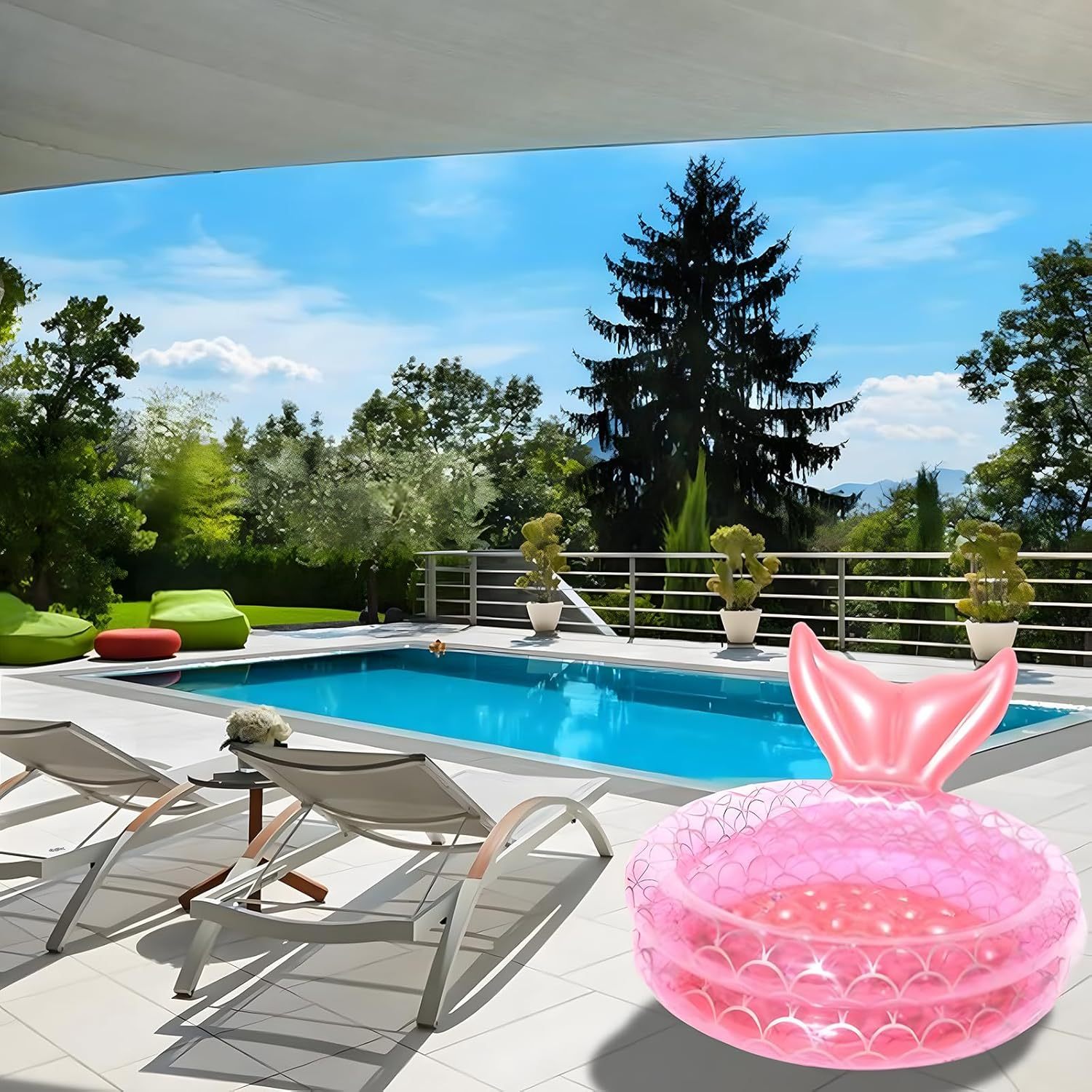 Hermosa Piscina de Sirena: diseño de estilo sirena, material translúcido, color rojo rosa, lo hizo hermoso. El regalo de verano favorito de las niñas. Es como jugar en un mundo de cuento de hadas.