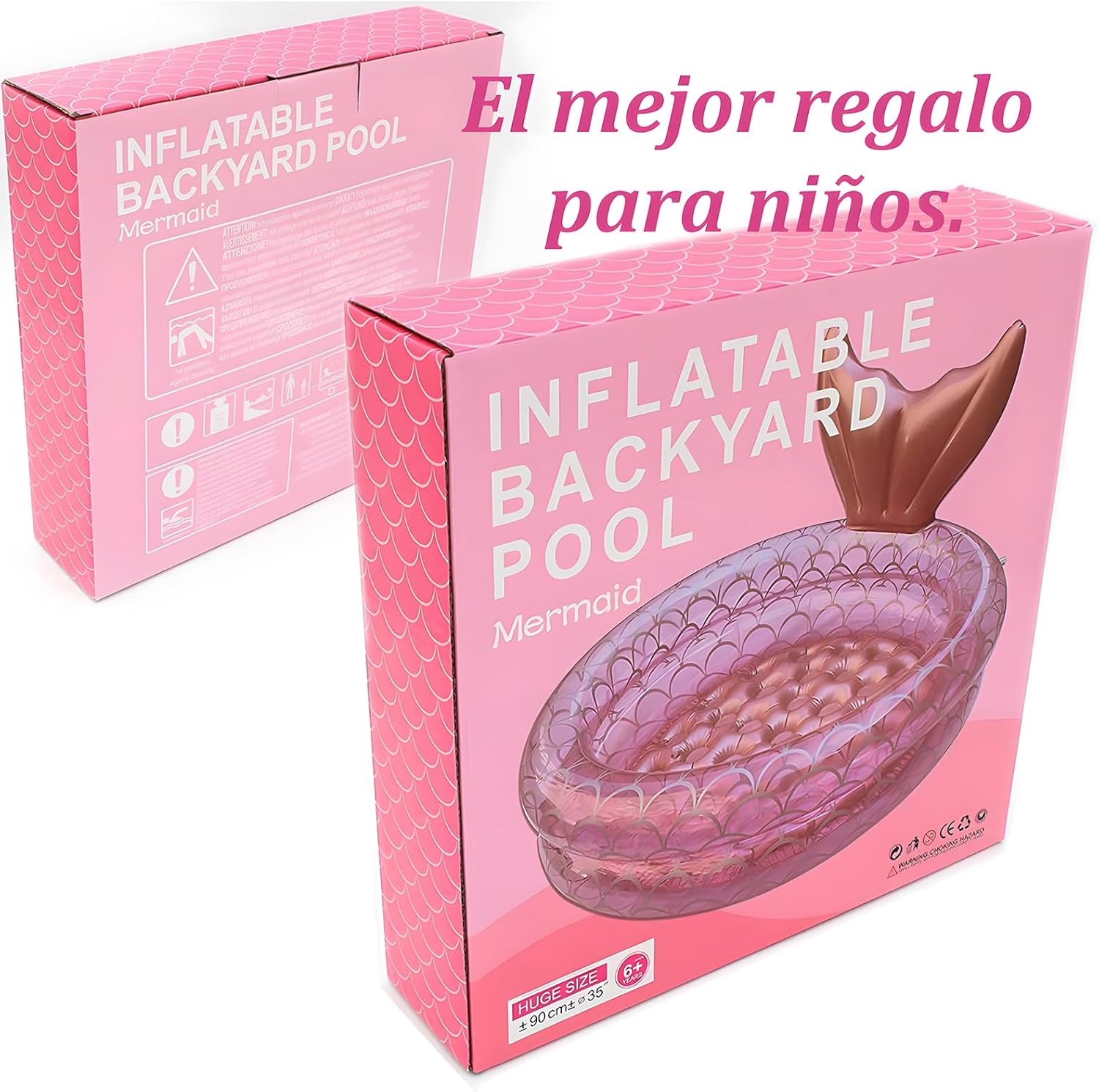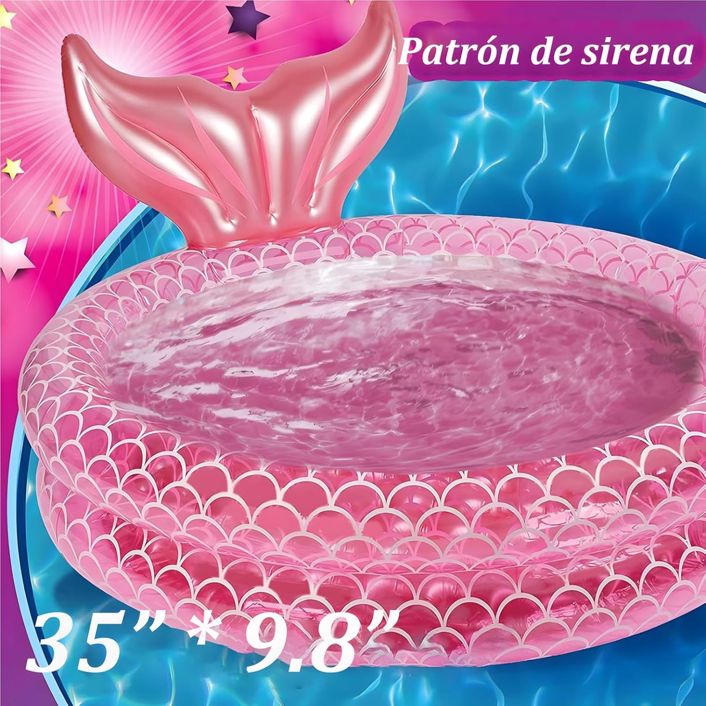 Albercas para niños,Piscina Inflable de Sirena para Patio Trasero, Piscina Redonda de Jardín para Miños, Piscinas por Encima del Suelo, Juguetes de Agua Acuáticos de Verano para Niños Niñas (35")