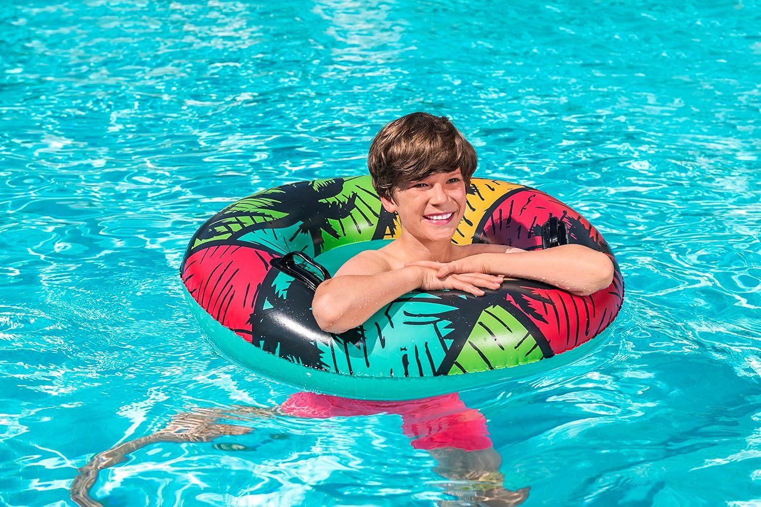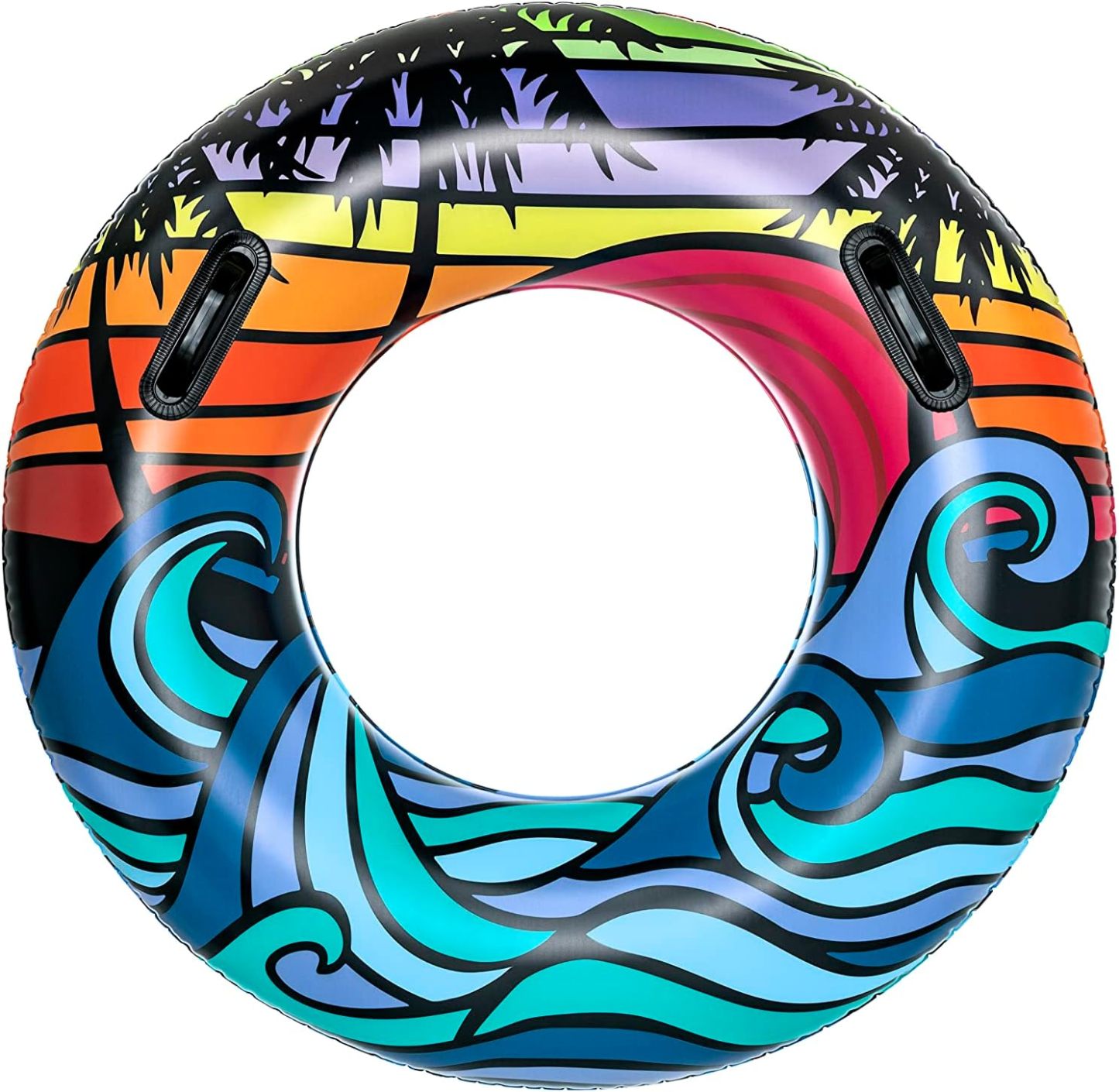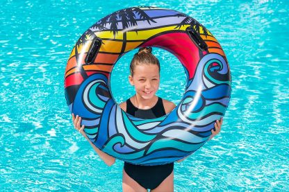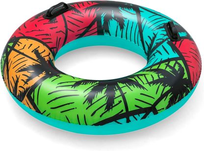 - Anillo de natación inflable: es el juguete de piscina perfecto para relajarse en un día caluroso. El diseño tropical único es ideal para días de playa o piscina. El anillo de natación más llamativo es un accesorio esencial para llevar de día festivo contigo