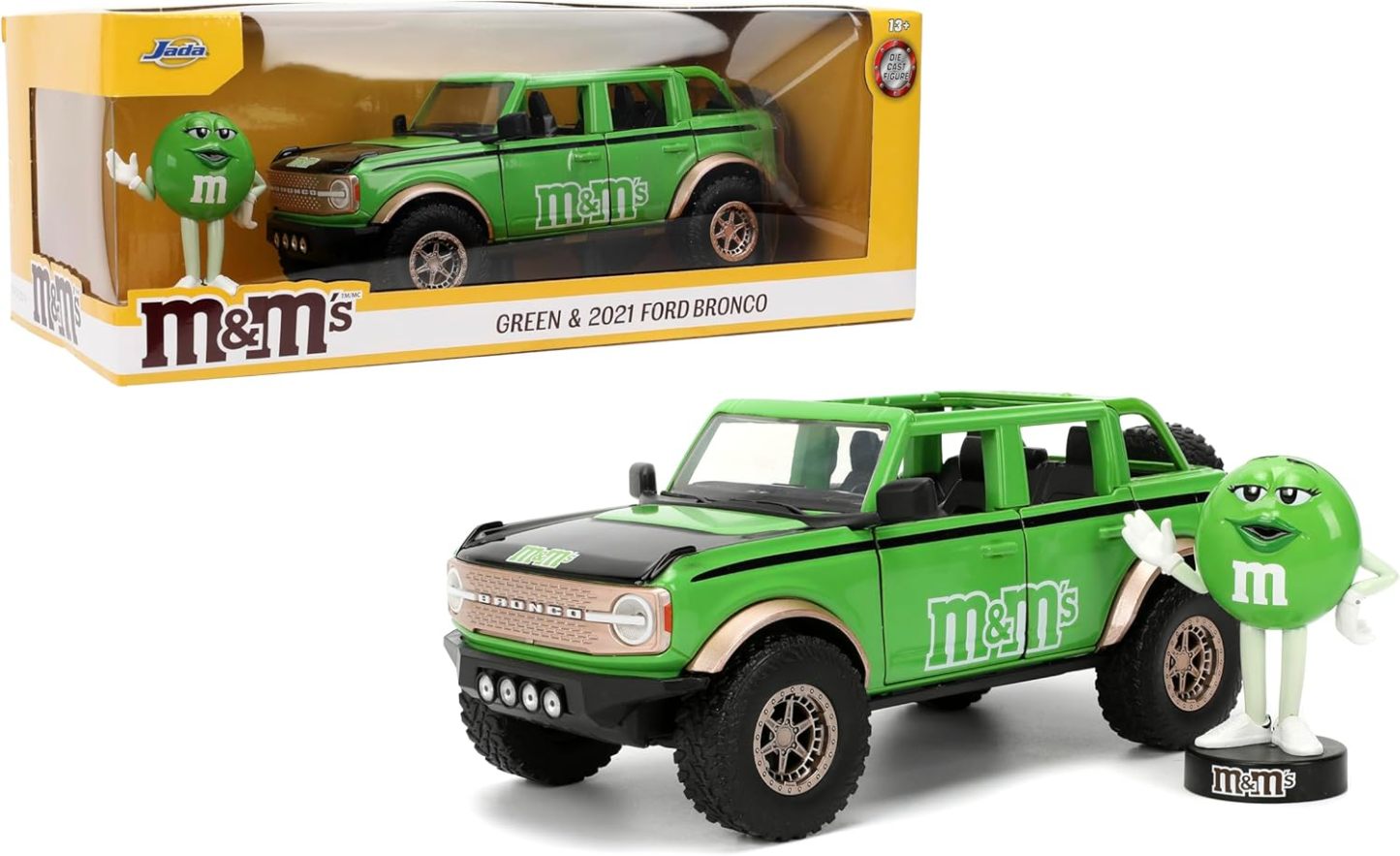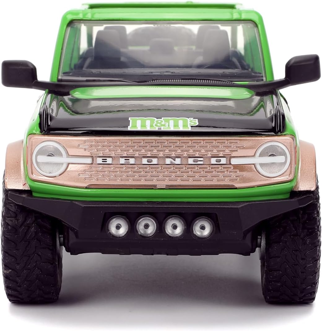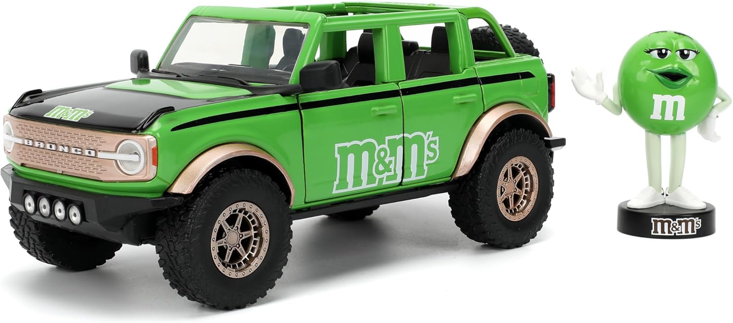 - Diseño único de M&M: combina el robusto Ford Bronco 2021 con la marca Green M&M'S y una figura de metal
