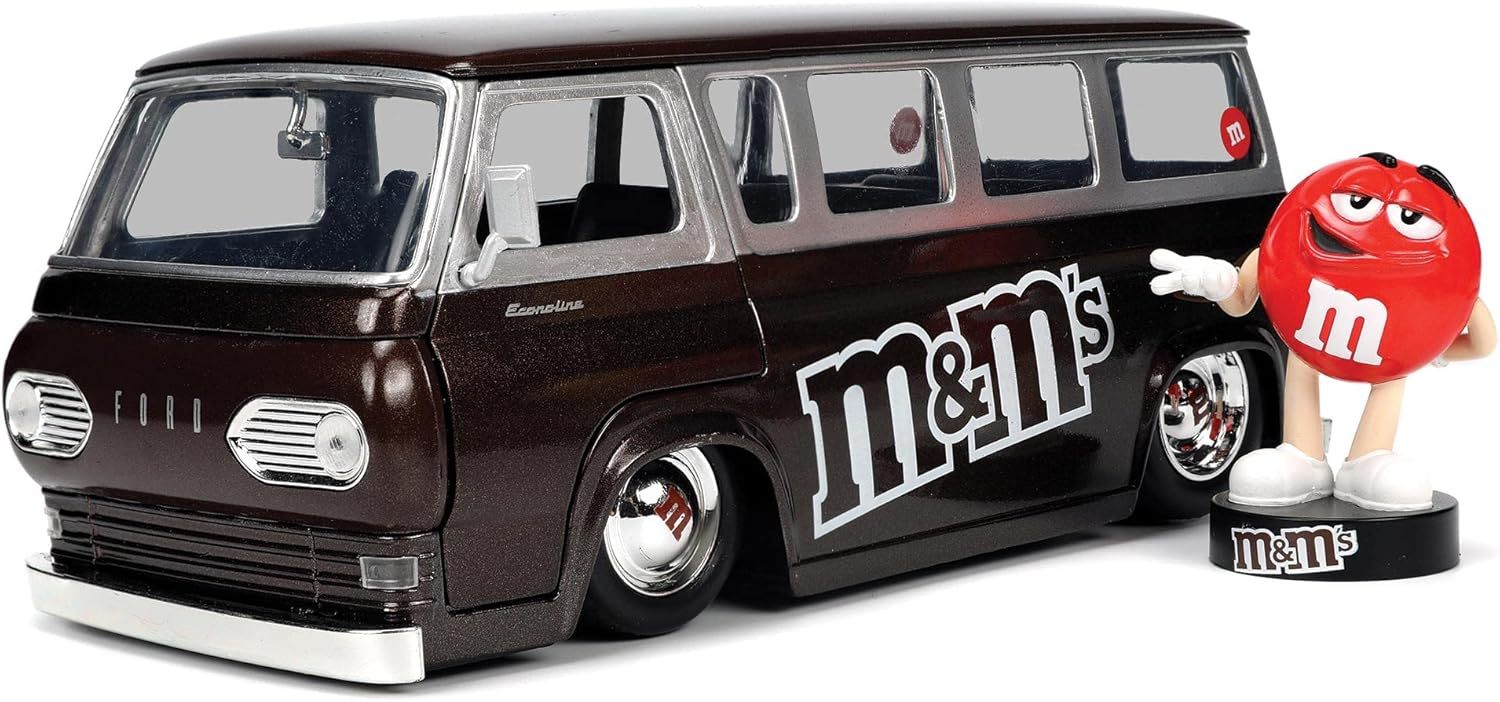 Jada Toys M&M's 1:24 1965 Ford Econoline Die-Cast Car with Red Figure, Toys for Kids and Adults