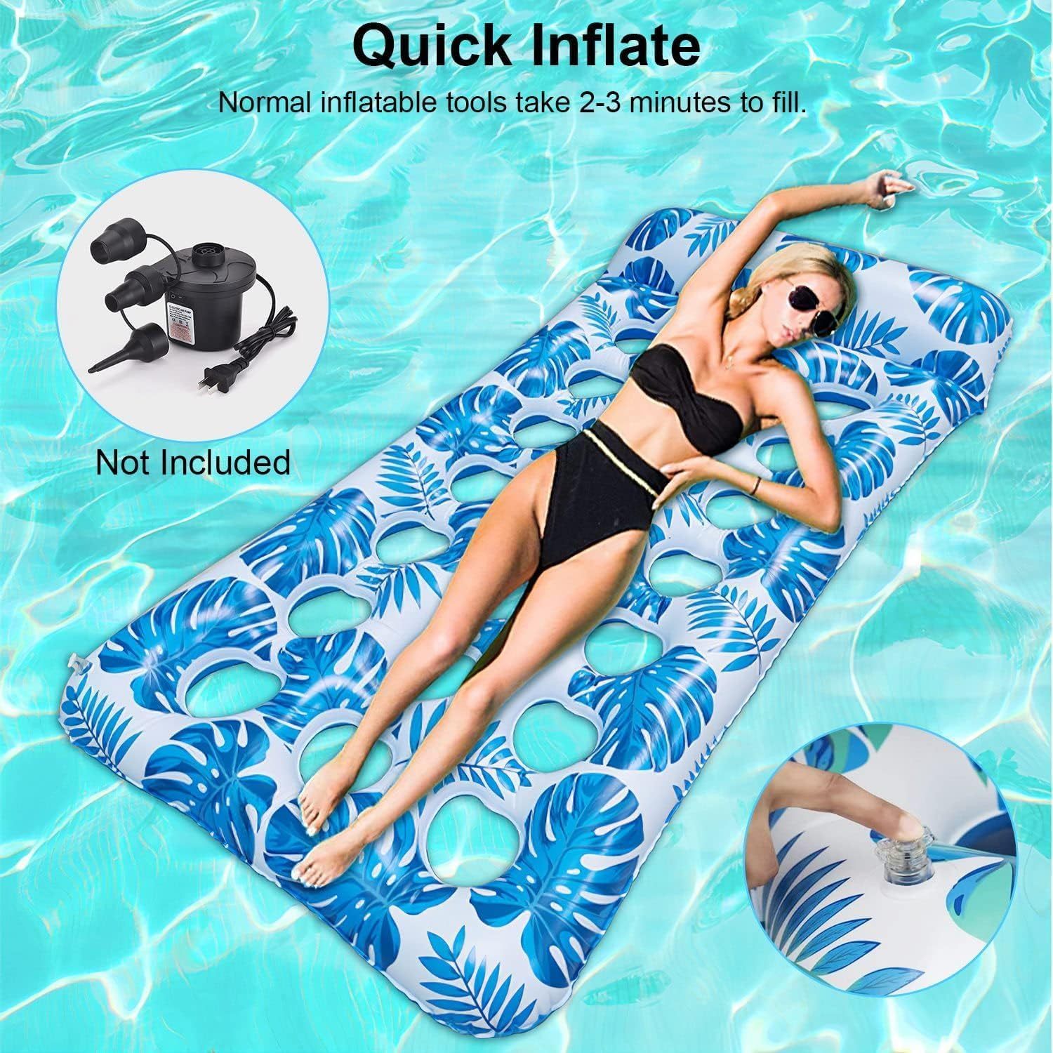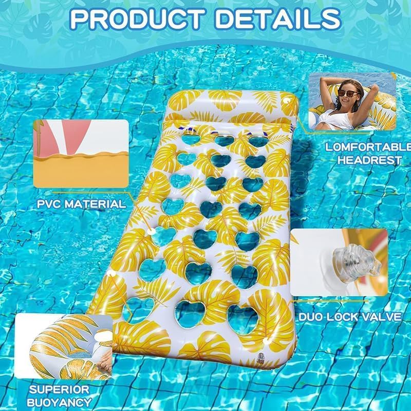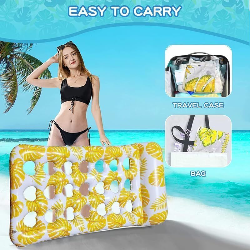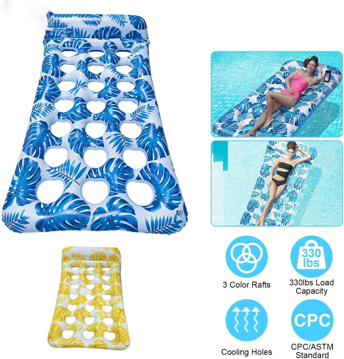 🏊【Flotador de piscina ultra cómodo y refrescante】Presentamos 2 colores brillantes de flotador de piscina inflable: tu compañero ideal para un verano perfecto. A diferencia de los flotadores de piscina comunes, nuestros flotadores vienen con un cómodo reposacabezas y 21 orificios de enfriamiento por flotador. Estos agujeros aumentan la transpirabilidad, permitiendo que tu piel disfrute del contacto directo con el agua refrescante.