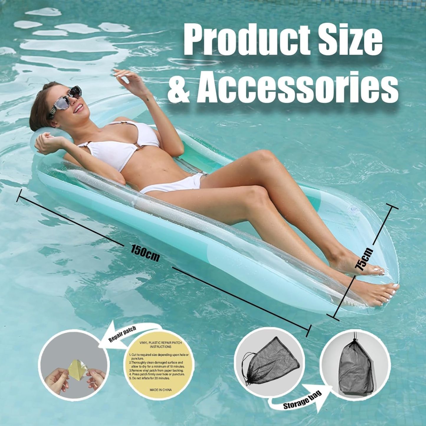 🏊【CERTIFICADO DE PVC Y CPC DE PRIMERA CALIDAD】Fabricados con PVC de primera calidad de 0,25 mm de espesor, nuestros flotadores y tumbonas para piscina son resistentes a los arañazos, robustos, resistentes a la abrasión y muy fáciles de limpiar. Con una capacidad de 330 libras, son adecuados tanto para hombres como para mujeres.
