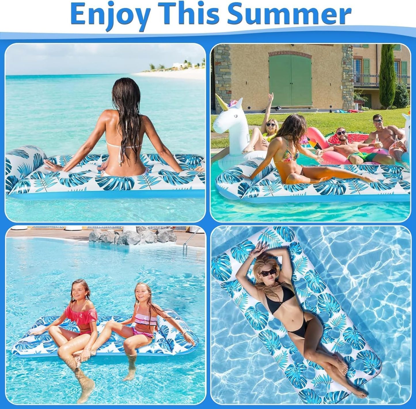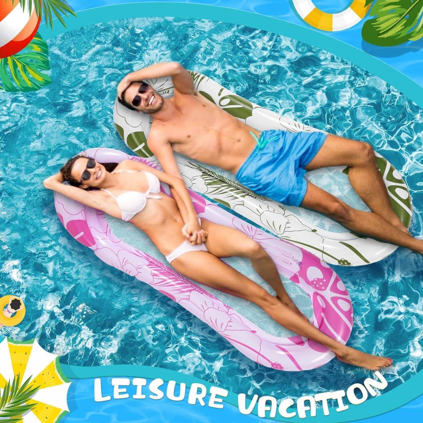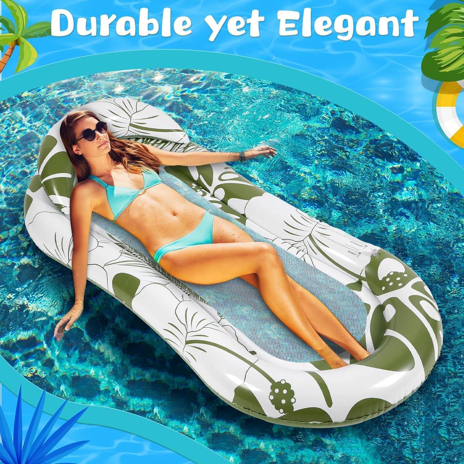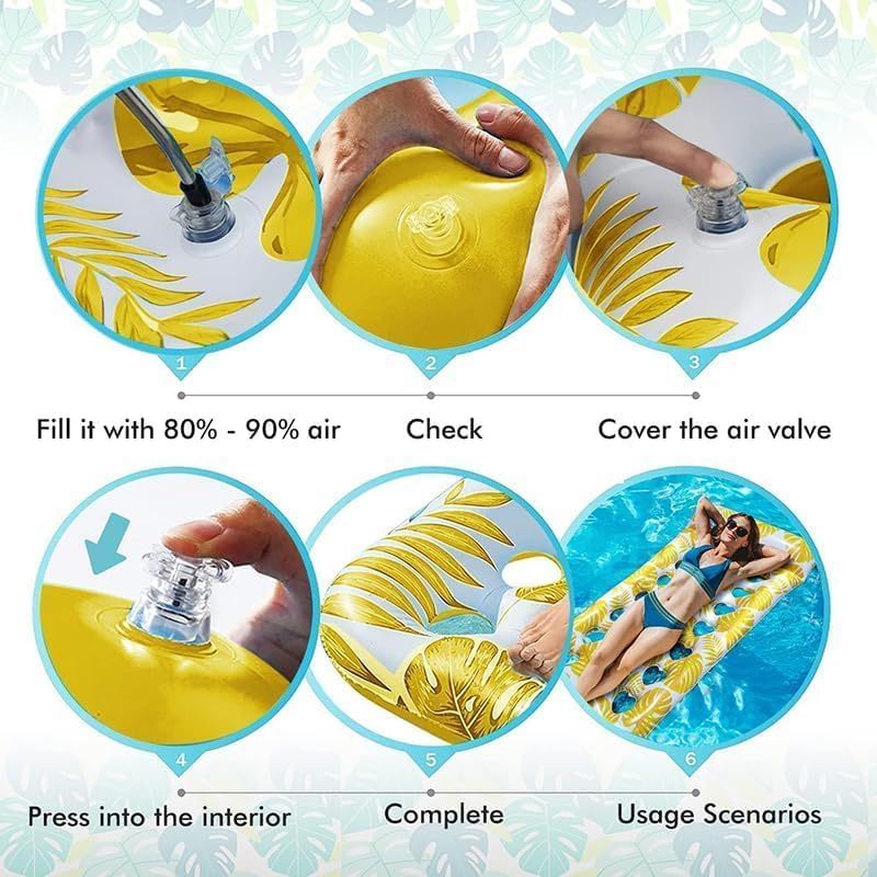 🏊【FLOTADORES DE PISCINA VERSÁTILES】Diseño multifuncional: una cama solar personal, un colchón flotante para piscina, una tumbona de playa y una almohadilla flotante para lago, ¡todo en uno! Relájese cómodamente en este flotador inflable y tome el sol. Se siente como una cama suave directamente en su piscina. Además, los patrones tropicales brillantes son el acento de verano perfecto.