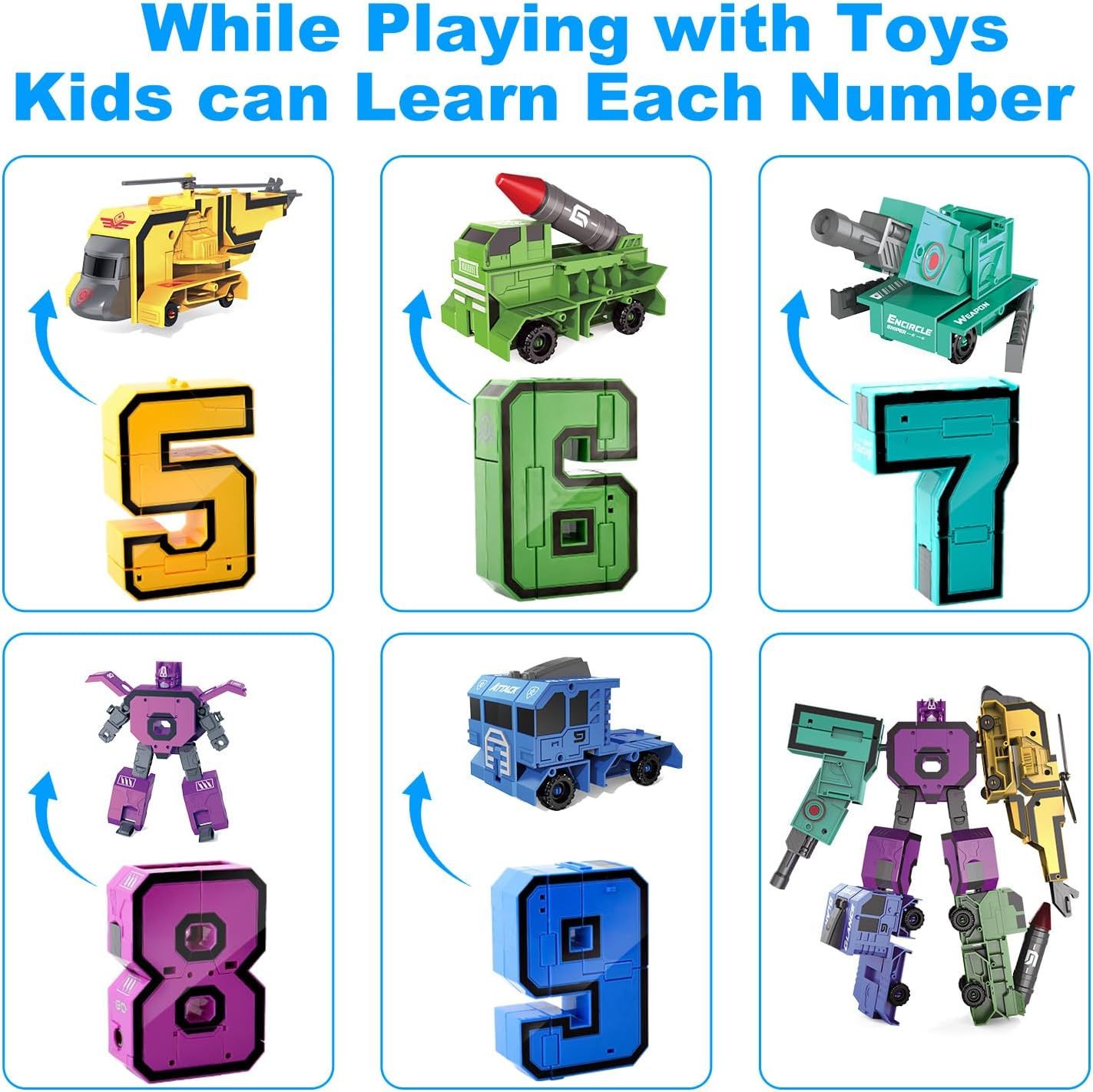 Number Robot Blocks Toys for Kids, Number Bots Learning Toys for Toddlers - Transform Robot Toys for Kids - 10Pcs DIY Preschool Activities Toy Cars for Boys Girls Christmas Birthday Gifts