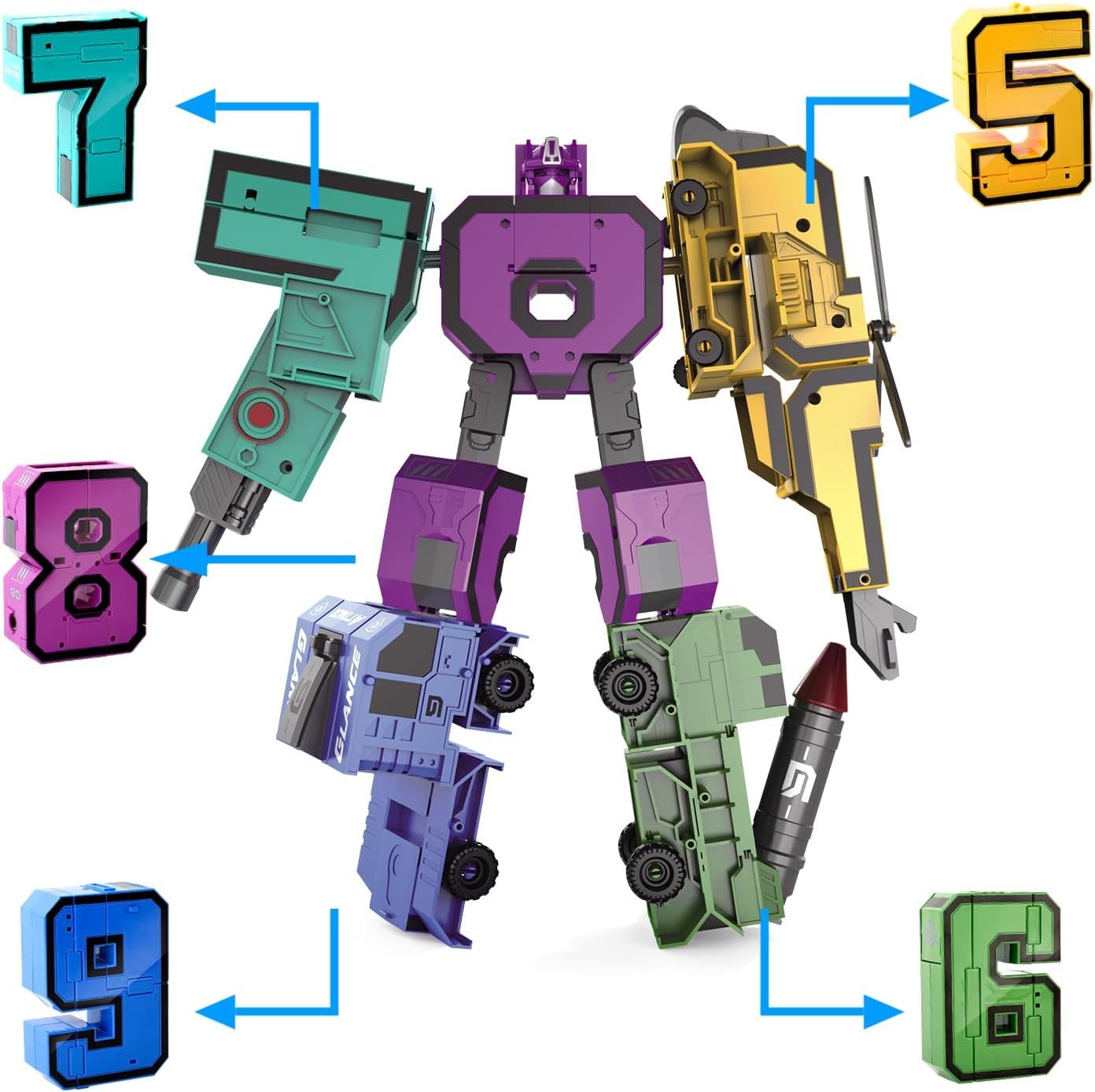 Diversas formas de jugar: el juguete único de bloques de números 5 en 1 de HOPANDOS da a los niños una experiencia de construcción sin precedentes. Contiene 10 bloques de construcción digitales deformables independientemente, que no solo se pueden utilizar como robots solos, sino también combinados en 2 superrobots ampliados. Todo el juego tiene 64 combinaciones diferentes, y cada conjunto puede traer una nueva experiencia, lo que permite a los niños descubrir nueva diversión y desatar creatividad ilimitada constantemente.