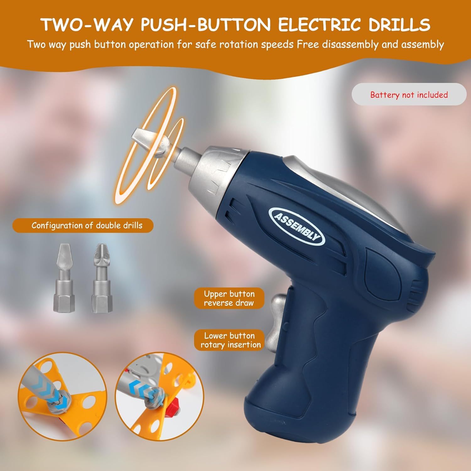 - 【High Quality Material】: The STEM kits for kids ages 5-7 is made of high-quality ABS plastic, lightweight, durable, impact-resistant and burr-free. With full color and stable structure, it can quickly attract children's attention. The toy drill is powered by AA batteries (not included), it is slow and there is no need to worry about harming your child.