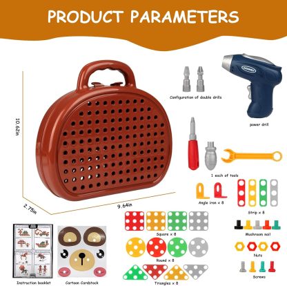 Every kid's drill and screw set maximizes their spatial awareness, logic problem solving and fine motor skills. STEM development through elementary engineering, construction play, and early mathematics instruction. Hope our products can bring you surprise and good mood.