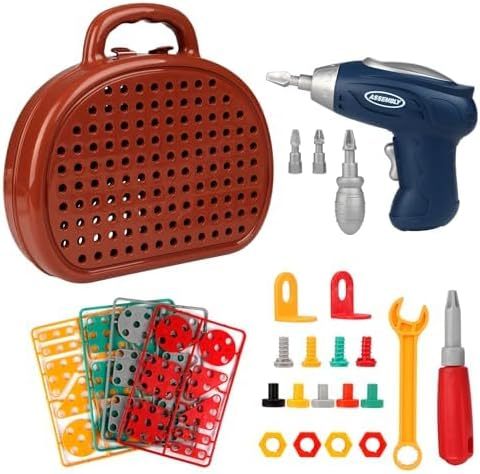 - 【Perfect Gift for Kids】: With an electric drill and screwdriver, design and build your own cute models by combining screws and nuts. Creative building builds hands-on ability. The magical Montessori play toolbox with drill is great for kids of all ages, it's the perfect gift for Christmas, Halloween, Thanksgiving and Birthdays!